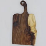 Hand-crafted Live Edge Small Handled Board is easy to grip and fully reversible for multiple serving options. No two boards are alike and are made from East-Indian walnut. Our organic-shaped boards are beautiful, durable and coated with a food-safe blend of organic beeswax and mineral oil.