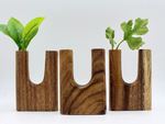 Each “Deuce” vase is hand-carved from East Indian Walnut. No two are alike thanks to the unique grain pattern and make a great housewarming gift that is sure to please. This vase can be purchased on its own, or as part of a set featuring four different shaped vases in four unique woods.
