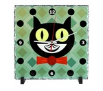 Square slate clock, 10.6" x 10.6", each with unique fractured edges. Slate can vary in size by up to -0.4". Production for slate requires the use of a green rubber pad, 1/8" thick and at least an inch larger than the plaque.