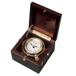 This beautiful Gimbaled Box Clock is reminiscent of the chronometers onboard every seagoing vessel in the 18th and 19th centuries. The solid forged brass clock features a quartz movement cradled in a traditional polished brass gimbal with a locking arm. The gimbaled clock rests in a square, mahogany-finished solid wood box with polished brass fittings, and is a stunning gift or commemorative piece when the accompanying brass plate is personalized.