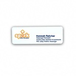 ID Badge DynaSub Aluminum - White Gloss, Backing is not included. Pin Backs (UF140PS) or magnetic backings (UFMPPS) are sold separately. Image with dye sublimation. 1" x 3" x .020".