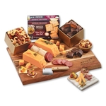 This oversized Acacia board (15" x 11.75") is fire-branded with your logo and accompanied by some of our amazing favorites. After nibbling on gourmet Wisconsin cheese and sausage, crunch some fresh-roasted deluxe mixed nuts and top off the flavor experience with creamy chocolate sea salt caramels. Snacking doesn't get better than this! Serves 8-12. Minimum order 4.