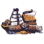 This tower is the perfect gift for every "chocolate lover" on your list, and who isn't? The elegant pillow-top boxes create a tower worthy of its "Park Avenue" designation. As beautiful as the tower is, it's what's inside that makes it truly spectacular-Deluxe Mixed Nuts, Cocoa Dusted Truffles, Chocolate Covered Pretzels and more. We foil-stamp your logo in white on navy ribbon. Your customers and employees will be thrilled to receive this gift. Tower measures 7.375" x 7.375" x 9". Minimum order 8.