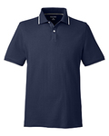 60% cotton, 40% polyester; Ribbed collar and cuffs with contrast striped tipping; Striped neck tape; Branded two button placket; Short-sleeve with ribbed trim; Side slit hem; J-Class logo on left sleeve; Classic Nautica flag label at left side seam;