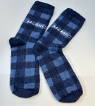 100% custom jacquard/woven socks. Knitted on 168 - 200 needle count machines, these fuzzy socks will provide great quality with the ability to knit complex logos and patterns.
